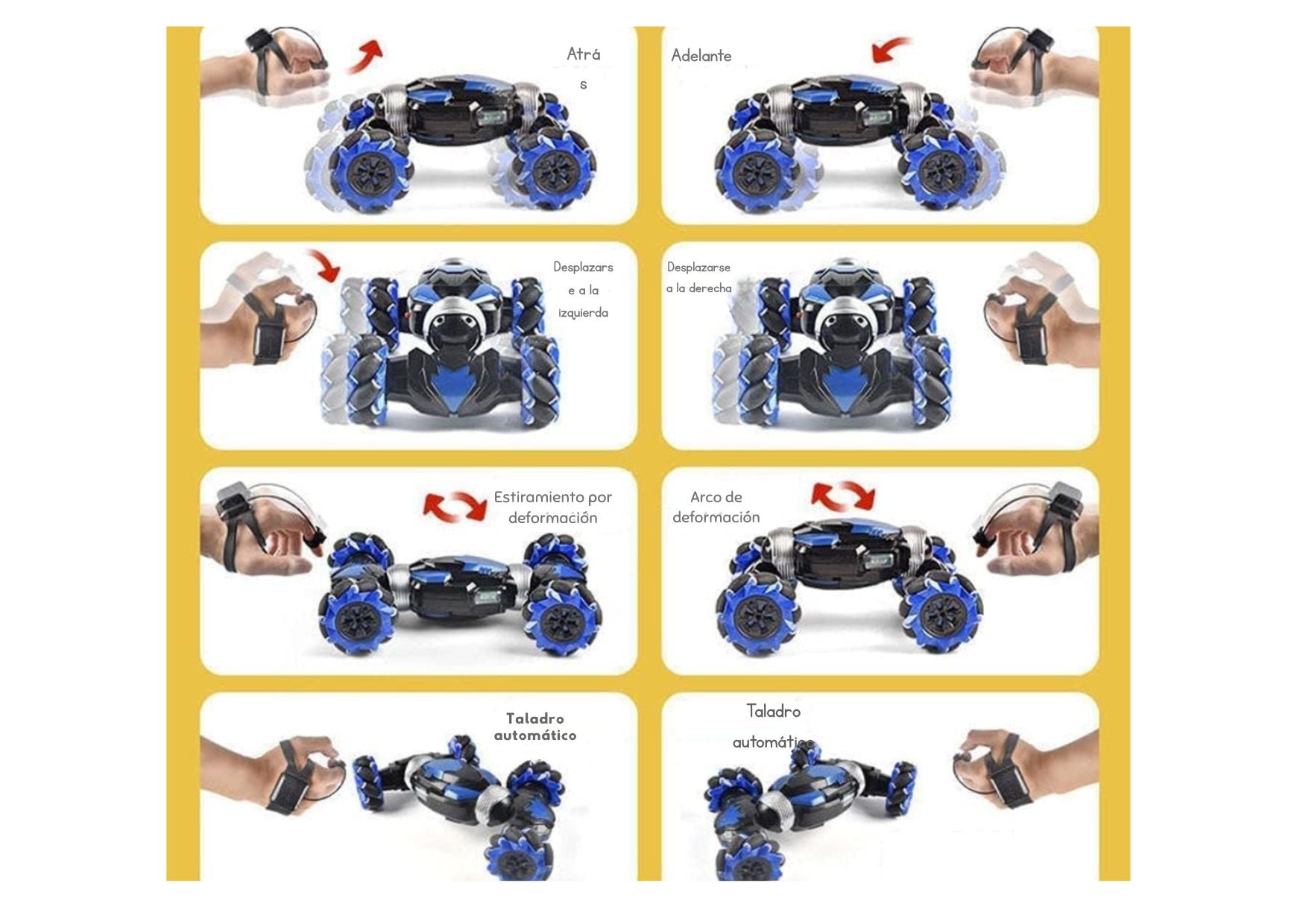 ¡Lleva tus juegos RC al siguiente nivel con un simple gesto! Nuestro Auto Control Remoto con Manejo 1 Mano te permite controlar tu coche RC de forma intuitiva y divertida. Olvídate de botones complicados, disfruta de acrobacias increíbles sin esfuerzo. ¡Es como tener un superpoder en tus manos! 5 características prácticas:Fácil de usar: Controla tu coche RC como si fuera una extensión de tu mano.Mayor diversión: Realiza trucos alucinantes que dejarán a todos con la boca abierta.Batería de larga duración: Juega sin parar gracias a su batería recargable de alta capacidad.Compatible con múltiples modelos: Adaptable a una gran variedad de coches RC.Diseño portátil: Llévalo contigo a donde quieras y disfruta de la diversión en cualquier lugar.